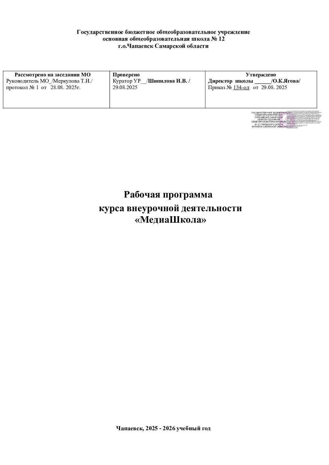 Государственное бюджетное общеобразовательное учреждение Самарской области основная общеобразовательная школа № 12 г.о. Чапаевск Самарской области