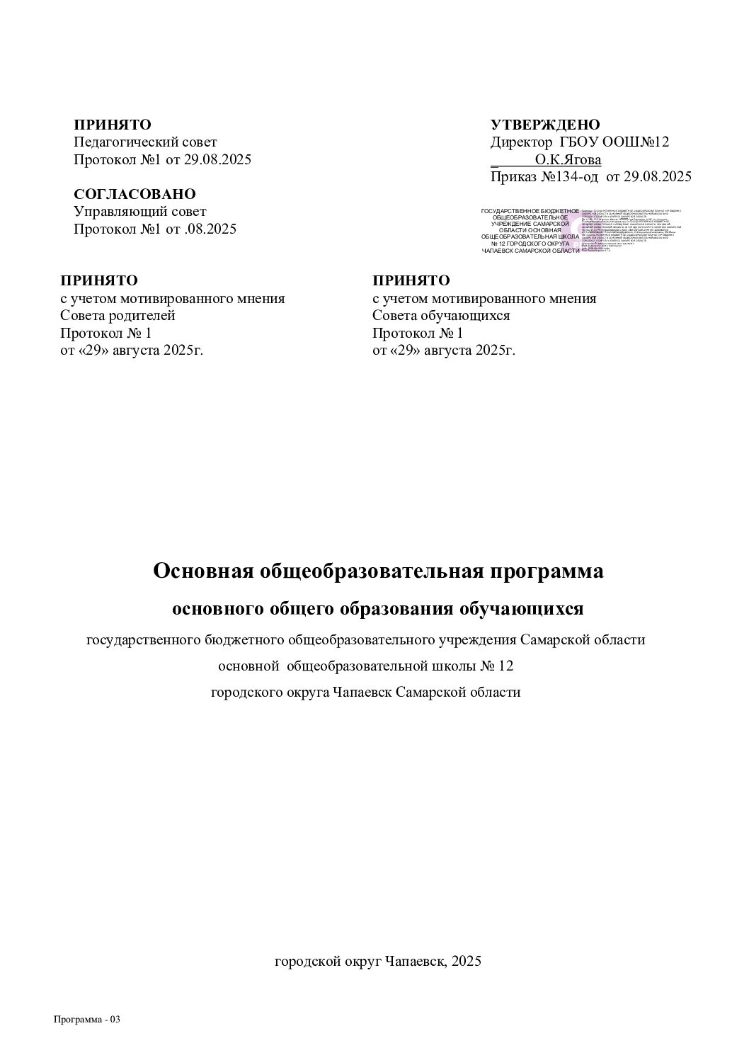 Государственное бюджетное общеобразовательное учреждение Самарской области основная общеобразовательная школа № 12 г.о. Чапаевск Самарской области