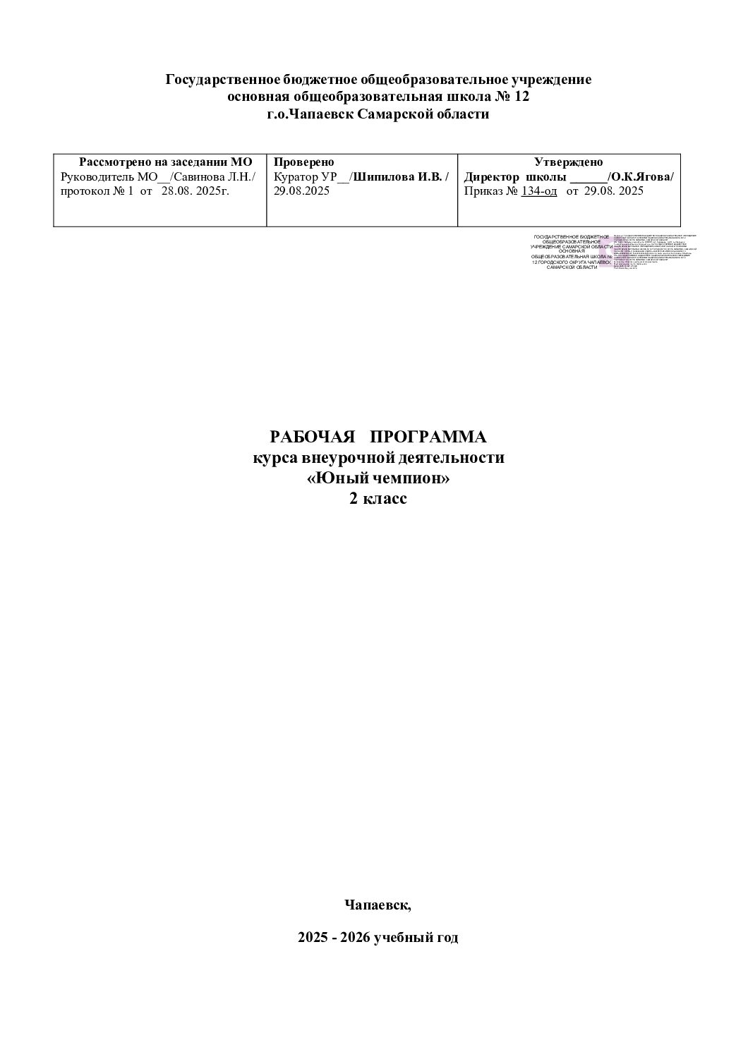 Государственное бюджетное общеобразовательное учреждение Самарской области основная общеобразовательная школа № 12 г.о. Чапаевск Самарской области